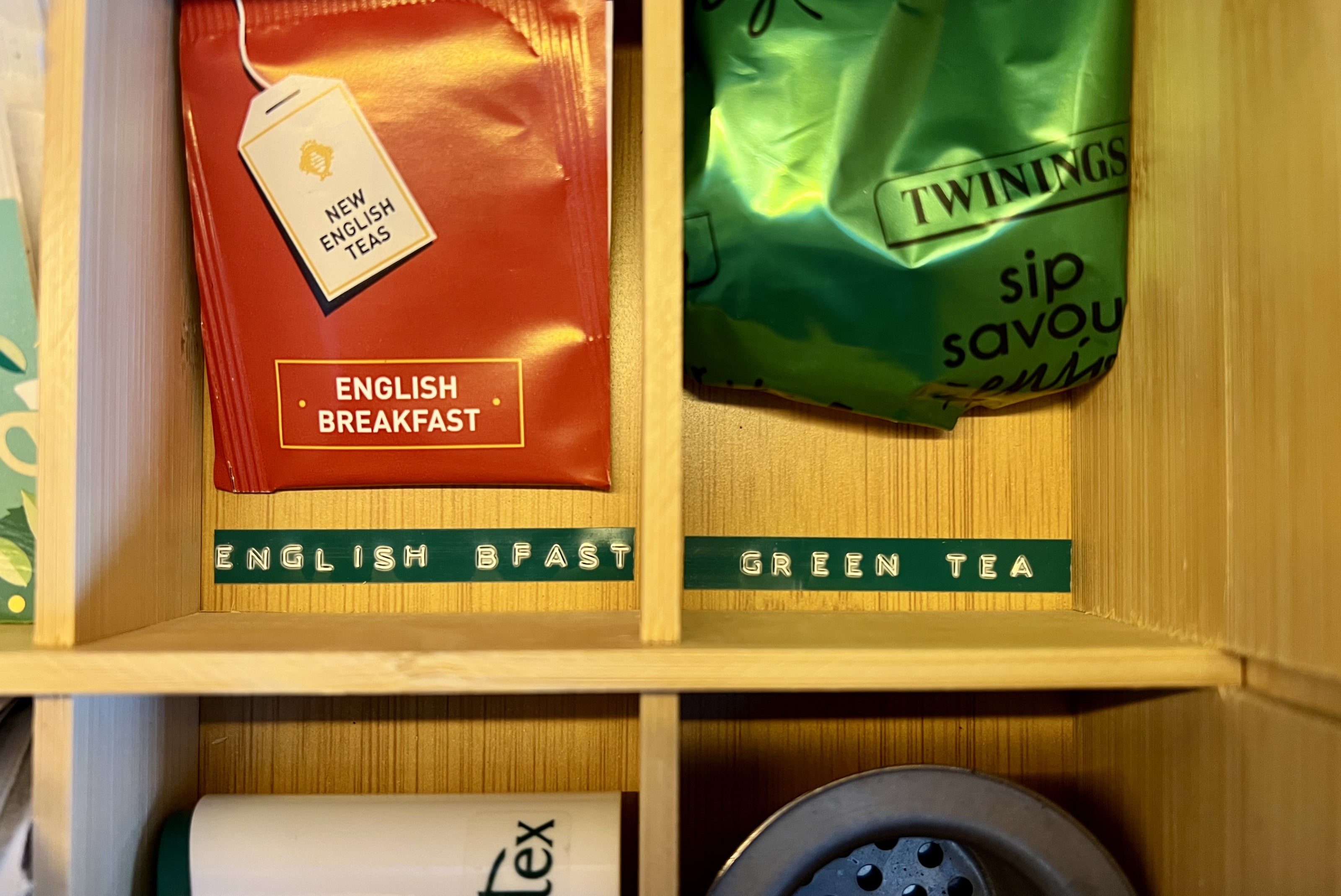 Now it's time to assign spaces for each of your favourite teas. From good old English Breakfast, Green Tea, Herbal Tea, and Fruit Tea so everything has a place.