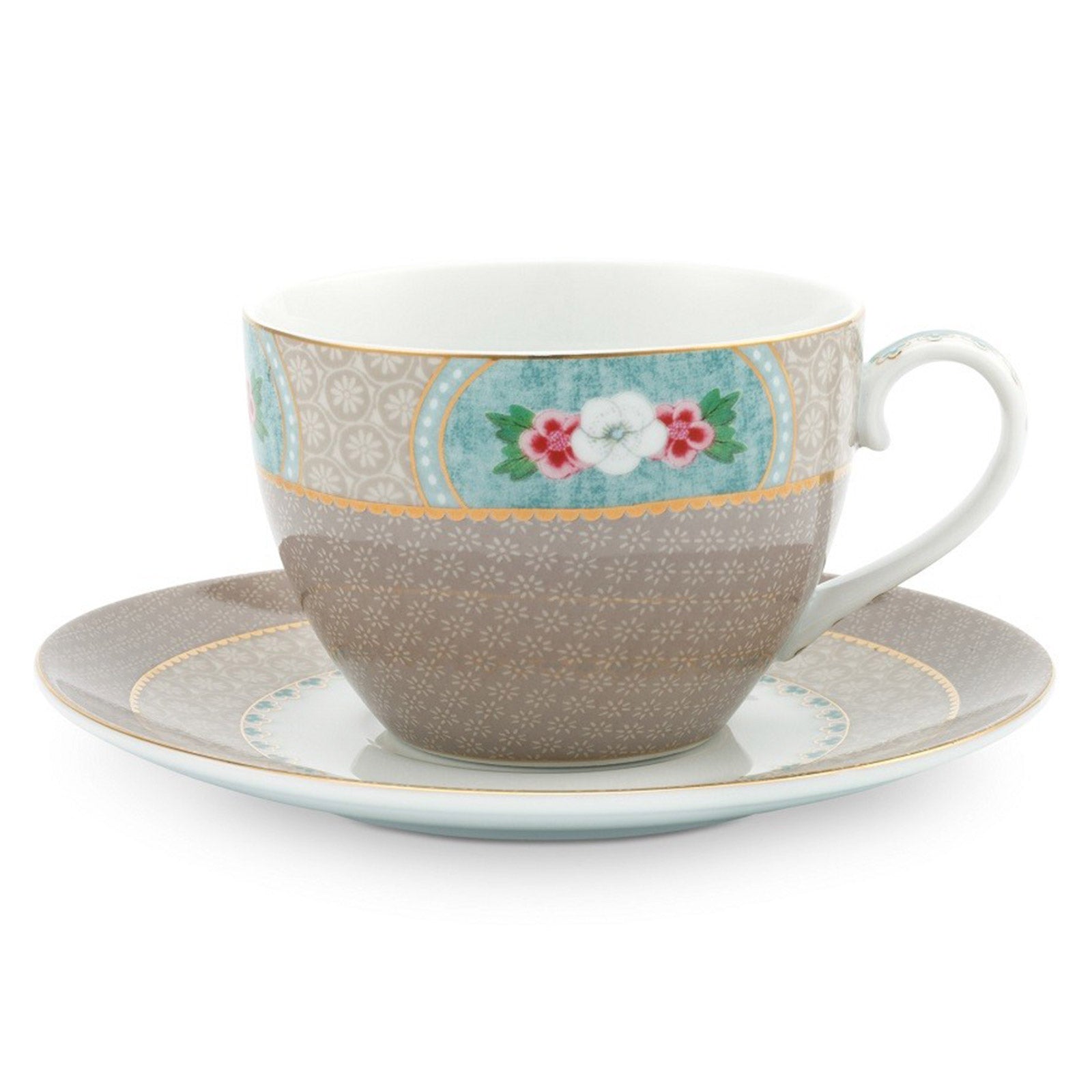 This khaki cup and saucer set is decorated with a khaki design, exotic flowers and golden details. Combines beautifully with the other sets in the Blushing Birds collection. - Pip Studio Blushing Birds - Cup & Saucer Set - Perfect for Afternoon Tea - Khaki - Teaware - Tea Lover Gift