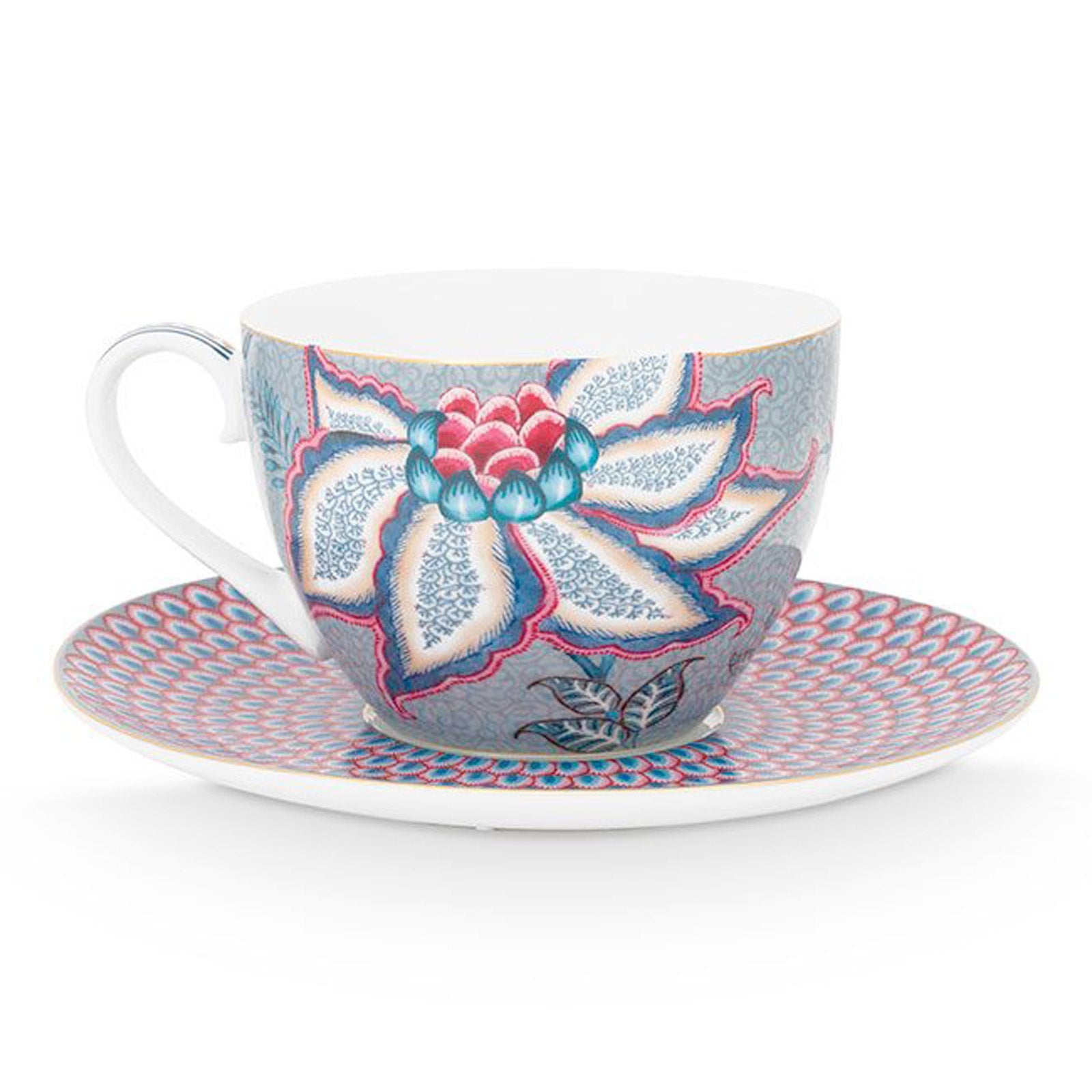 Pip Studio Flower Festival Cup & Saucer Set Perfect for Afternoon Tea Light Blue Teaware Tea Lover Gift
