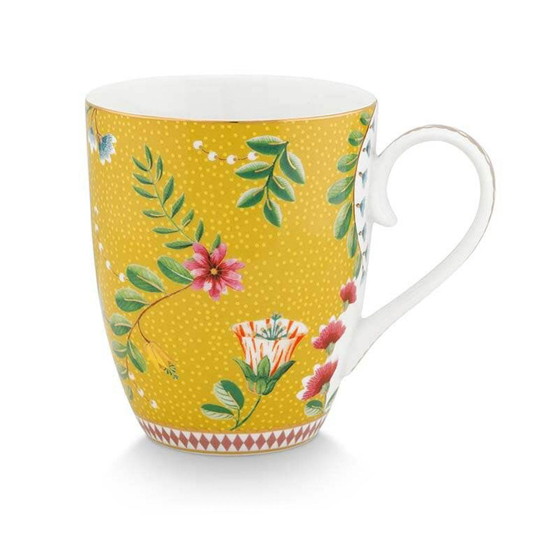 This yellow porcelain mug is decorated all around with exotic flowers and golden details on a yellow background. Combines beautifully with the other porcelain sets in the La Majorelle collection. - Pip Studio La Majorelle Mug - Yellow