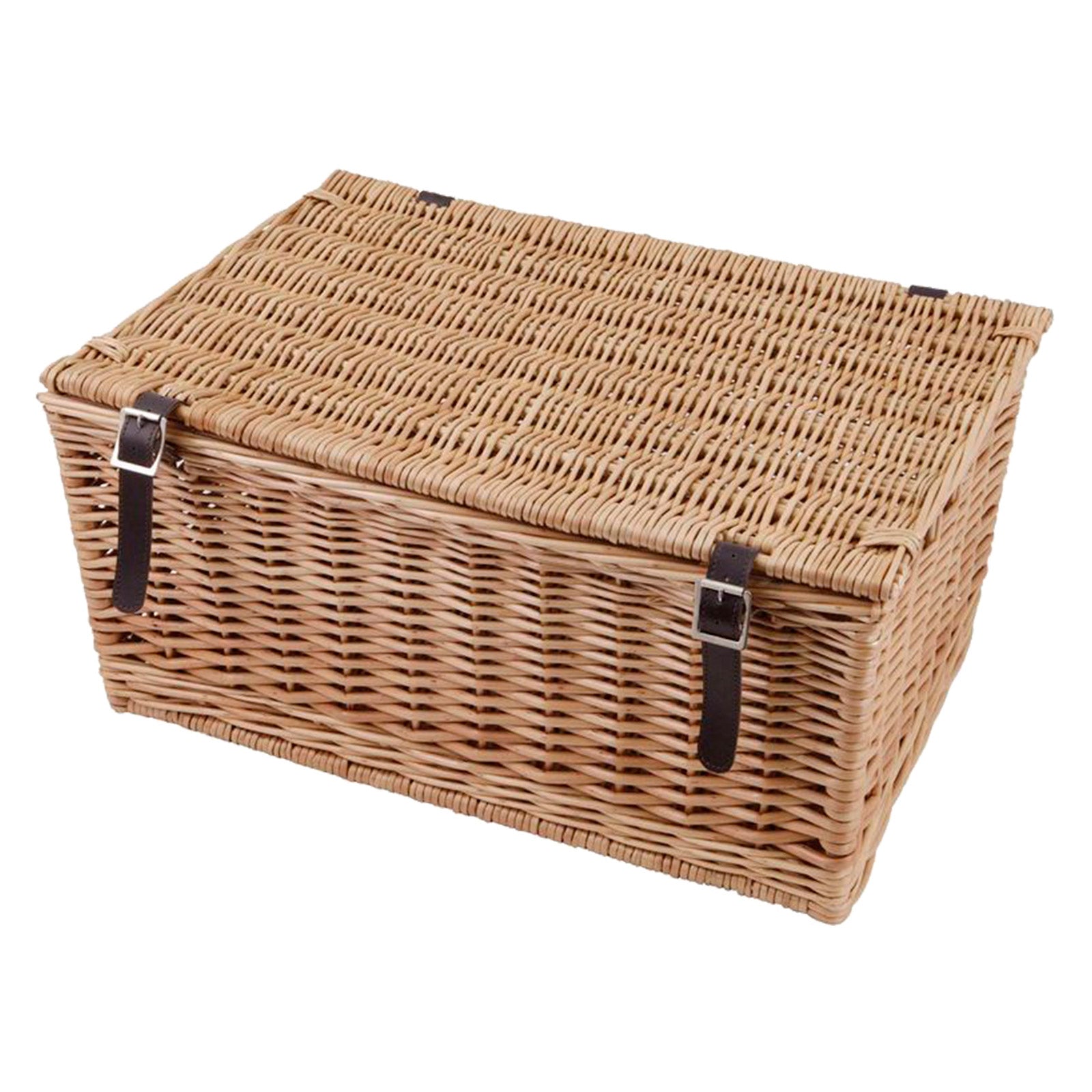 Medium wicker basket with faux leather fittings. This wicker hamper is made from top quality Autumn willow with natural boiled finish to give a luxury finish. *** Disclaimer*** Wicker is a natural product and as such can vary in colour (lighter or darker) and size from batch to batch. - Twinings Empty Wicker Hamper - 20" - Faux Leather Fittings - Create Your Own Gift - Tea Hamper