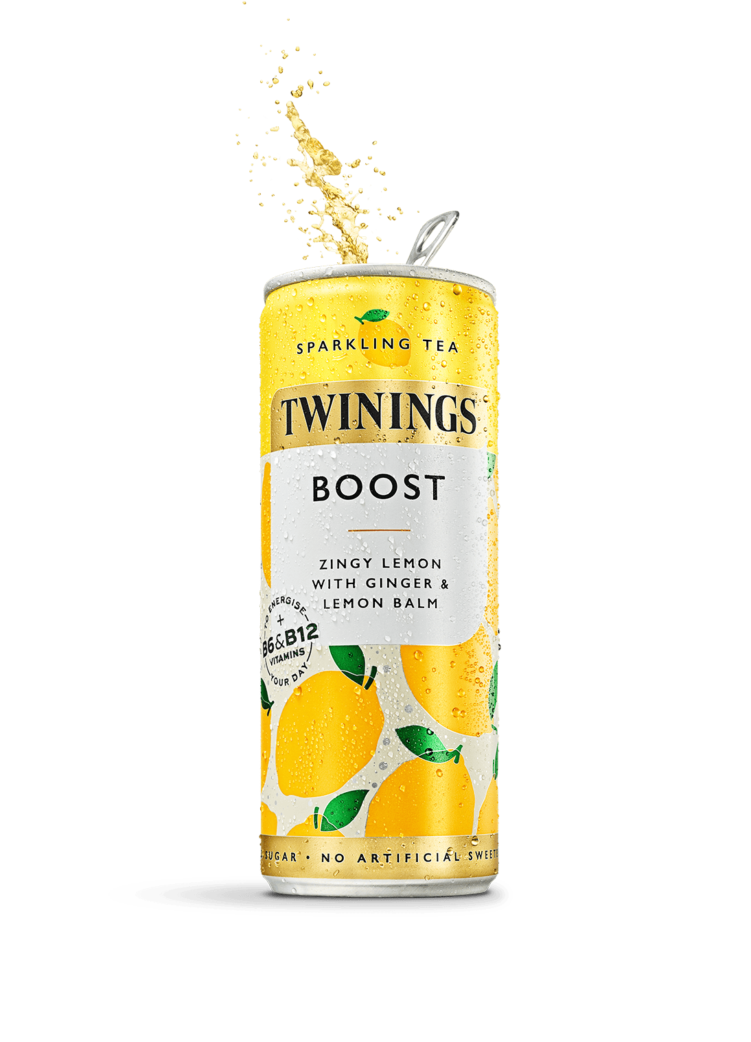 Twinings Sparkling Tea Boost Lemon & Ginger Sparkling Black Tea Infusion With Vitamins B6, B12 & C