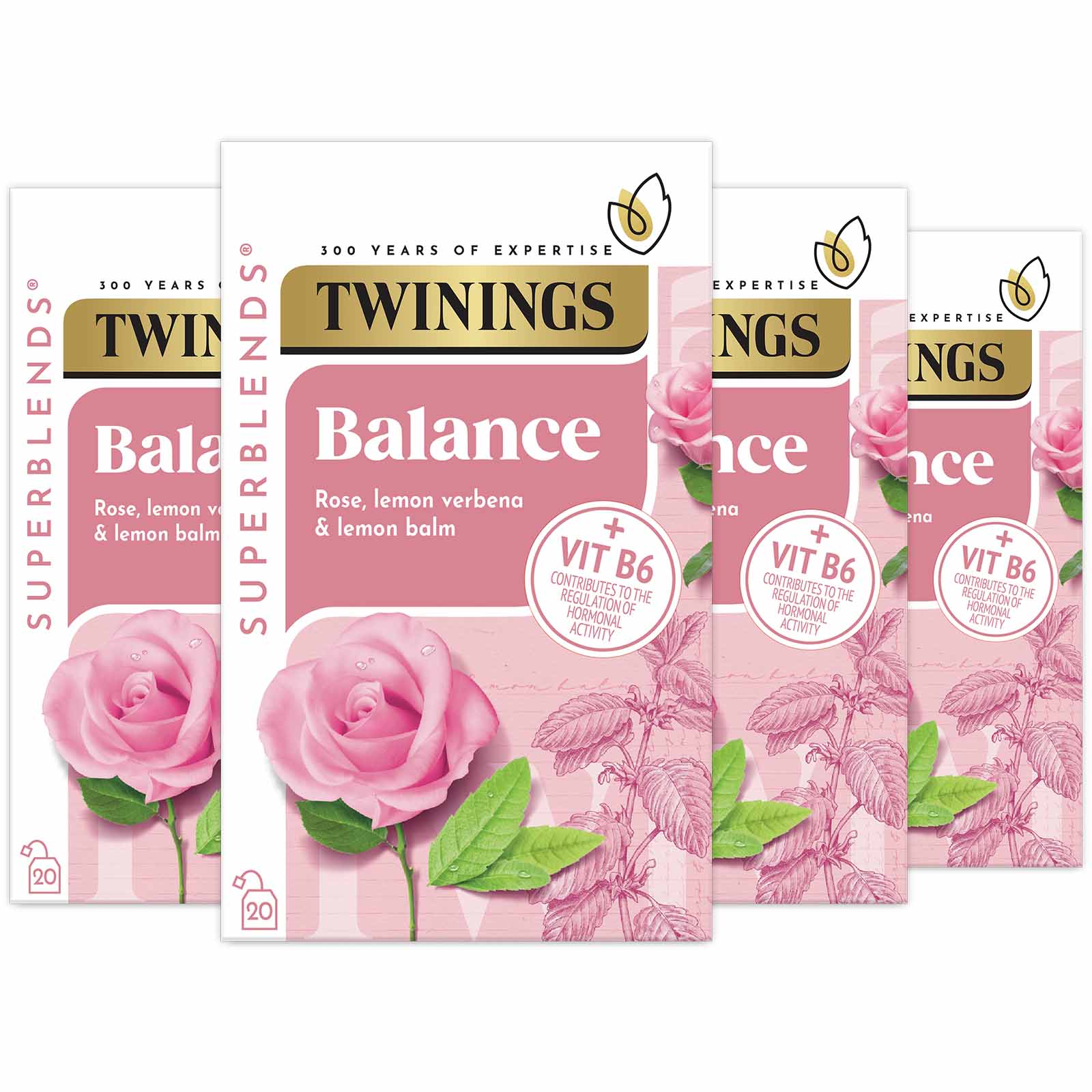 Twinings Superblends Balance Rose & Lemon Green Tea Infusion Added Vitamin B6 Health Tea Drink 4 x 20 Tea Bags
